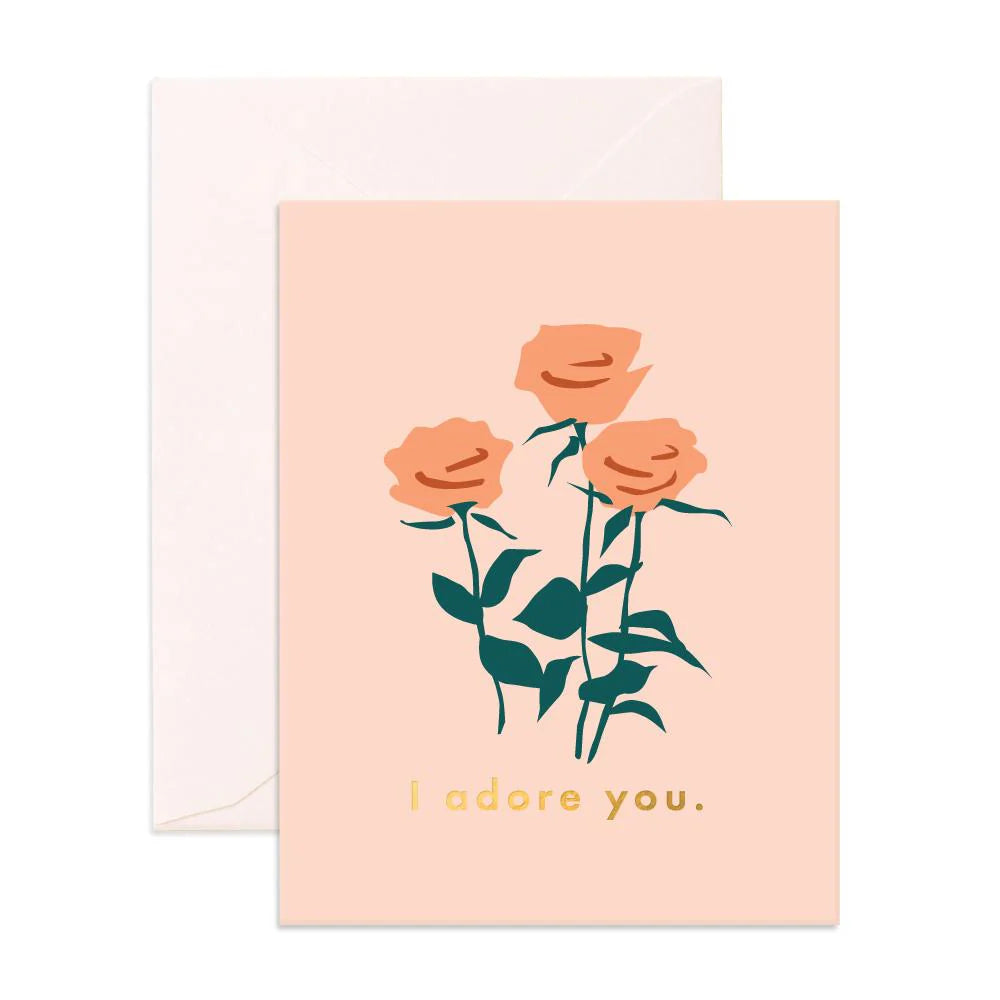 Format: 108 x 140mm / 4.25 x 5.5 inch. Material: Warm White Uncoated Card Stock. Process. Full-color + Foil Stamp. Features: Blank Interior. Foil: Gold Metallic Foil. Envelope: Blush. Origin: Made in Australia.