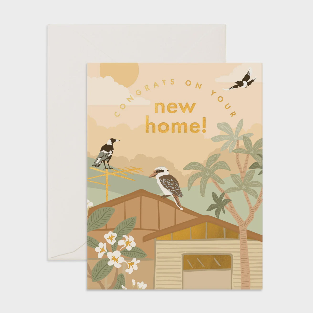 Format: 108 x 140mm / 4.25 x 5.5 inches. Material: Warm White Uncoated Card Stock. Process. Full-color + Foil Stamp. Features: Blank Interior. Foil: Gold Metallic Foil. Envelope: Cream. Origin: Made in Australia.
