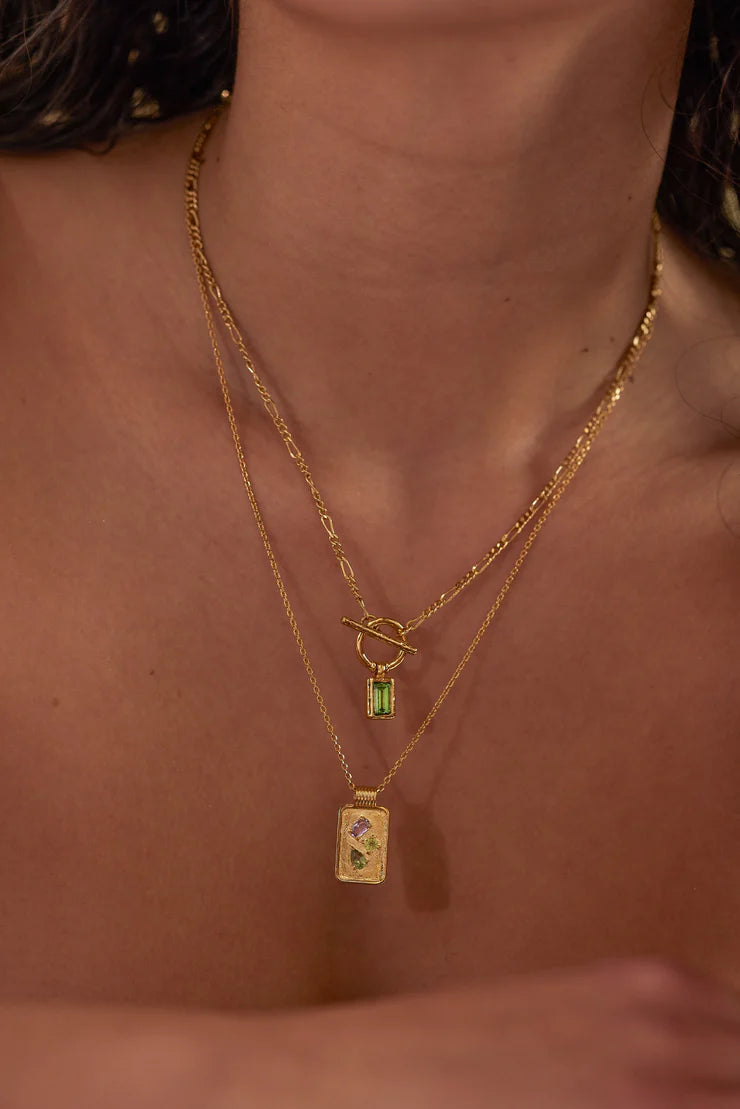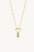 The Apatite Toggle Necklace brings all eyes forward - with a bold Figaro chain, front toggle clasp, and a baguette-cut Apatite suspended from the centre.