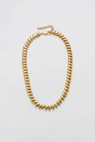 Emerson Necklace– Bold and striking, the Emerson Necklace is crafted from high-shine gold links with a modern, sculptural silhouette. Its chunky, fluid design makes it the perfect statement piece to elevate any outfit, whether worn alone or layered for a contemporary edge.