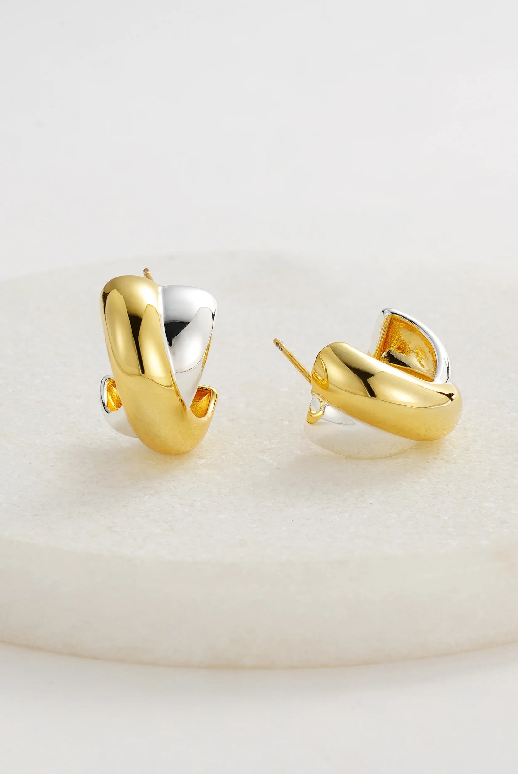 The Freya Hoop blends gold and silver tones in a bold, sculptural design that feels both timeless and modern. Its curved silhouette makes a statement while remaining versatile enough for everyday wear. Pair with theFreya Ringor layer alongside simple studs for a perfectly balanced mixed-metal look.