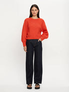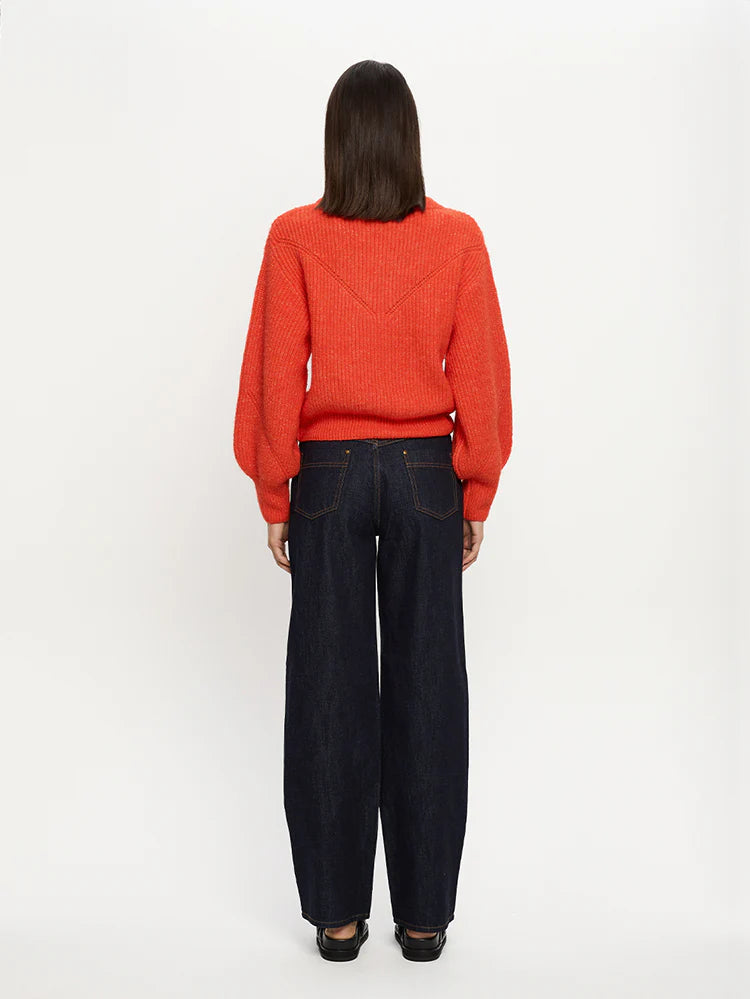 The Reine Knit is a relaxed fit featuring a blouson sleeve, ribbed cuff and is complete with stitching throughout.