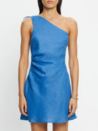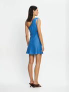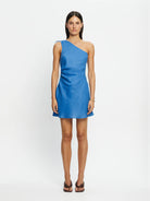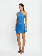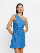 The Saskia Mini Dress is defined by its asymmetrical neckline and delicate shoulder tie, with subtle tuck detailing at the waist and a softly flared skirt that moves with ease. Effortlessly feminine and refined, made for moments in motion from long lunches to evening celebrations.