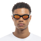 Offering a modern update to the minimalistic 90s look, our BODY BUMPIN II sunglasses are designed with a wide fit, narrow aesthetic and slightly wrapped silhouette. Finished with Le Specs geometric flag stripe buckle hardware on both temples, these frames are a wardrobe staple.