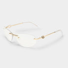 Giving major Y2K energy, our SLINKY rimless sunglasses offer a whole lot of understated millennial glam. Designed with a three-dimensionally crafted metal flag stripe temple, this flattering oval style features adjustable nose pads for a bespoke fit.