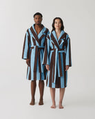 Thoughtful details elevate the experience: a unisex fit with a classic shawl collar, functional pockets, and an adjustable, removable waist tie. A discreet hanger loop inside the collar makes storage simple, while its versatile design can be worn open or tied. This is a robe designed to be lived in—it’s comfort, style, and function, all in one.