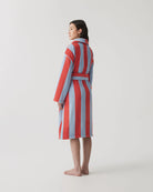 Thoughtful details elevate the experience: a unisex fit with a classic shawl collar, functional pockets, and an adjustable, removable waist tie. A discreet hanger loop inside the collar makes storage simple, while its versatile design can be worn open or tied. This is a robe designed to be lived in—it’s comfort, style, and function, all in one.
