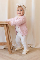 Add a touch of sweetness to your little one’s wardrobe with the Gracie Cardigan in Trinket - a beautifully knitted piece adorned with delicate heart designs. This soft pink cardigan offers a gentle pop of colour and a playful yet timeless look, perfect for layering across seasons.