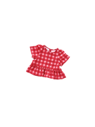 Cotton short sleeve top featuring our exclusive Jolie print. Functional button on the back of the neck for easy on/off, ruffle frill hem detail at waist. Mix and match with items from our Christmas Collection.