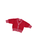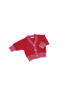 Thin knit cardigan in our Scarlet colour featuring a flower pointelle detail, contrasting scallop cuffs and waistband and flower buttons down the centre. Mix and match with items from our Christmas Collection.