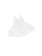 Cotton dress in our Laurel broderie anglaise fabric. Shirred bodice with adjustable button hole straps. Mix and match with items from our Christmas Collection.