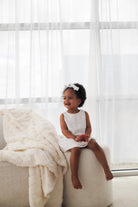 Cotton singlet in our Laurel broderie anglaise fabric. Functional ties down the middle, can be worn in reverse. Mix and match with items from our Christmas Collection.