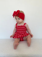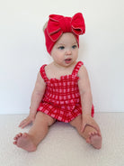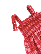 A lightweight cotton romper in our exclusive Jolie print. Shirred detailing across the bodice with adjustable button straps at back and snaps at the crotch for easy on/off and nappy changes. Mix and match with items from our Christmas Collection.