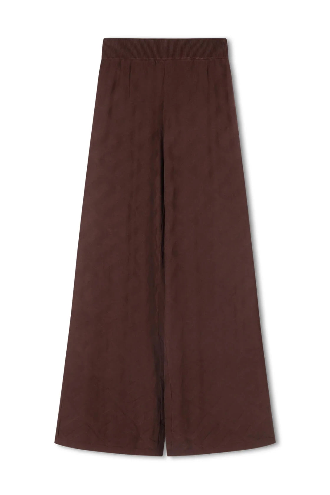 The Aria Pant in Espresso is a relaxed wide-leg knit, cut from 100% organic cotton for natural breathability. Its lightweight patterned weave flows with movement, while the ribbed elastic waist and side splits add ease and versatility. Designed for warm-weather layering and effortless transitions.