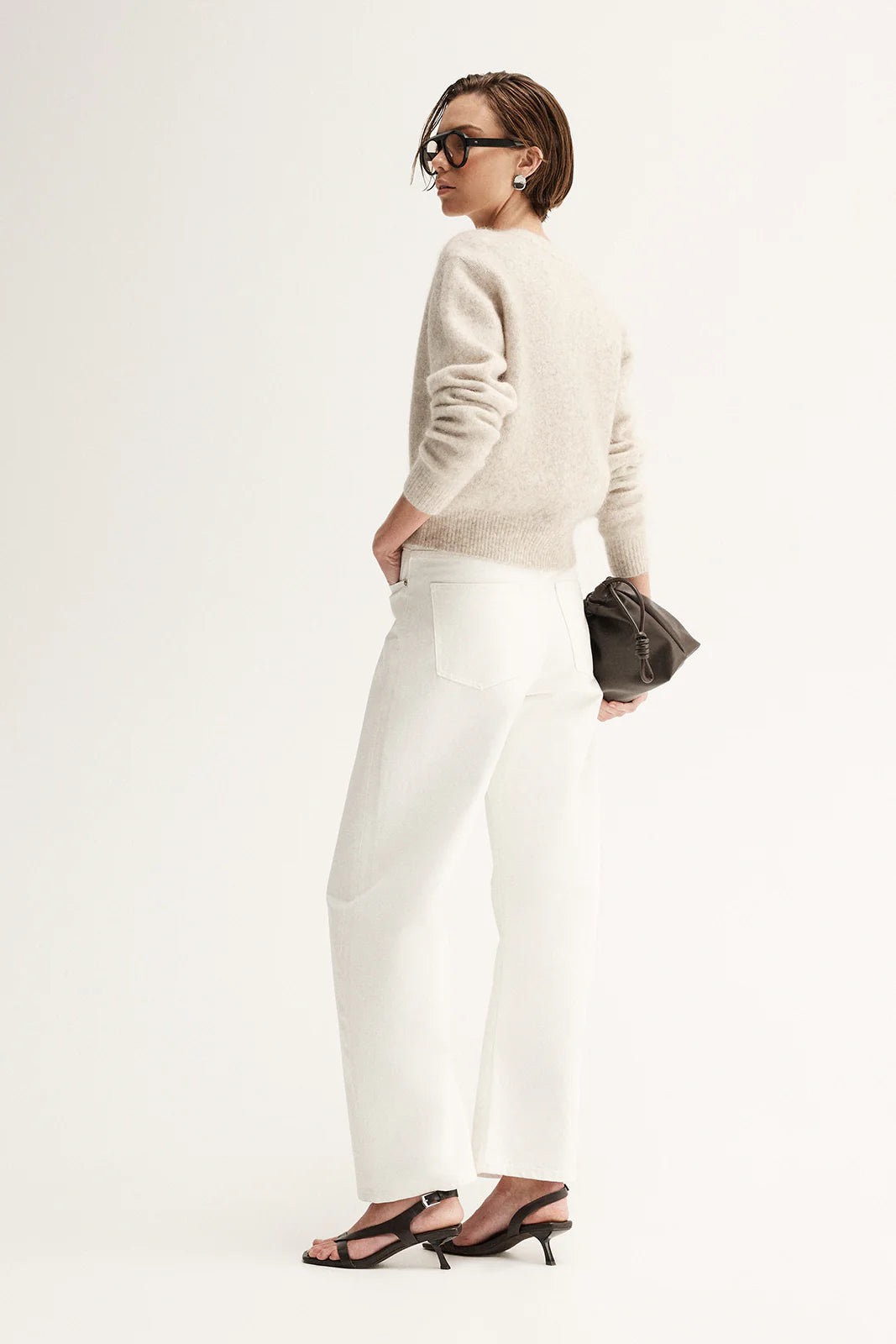 Designed with versatility in mind, our signature knitwear takes on new colours, textures and silhouettes to elevate your transitional wardrobe. The Abigail Cardigan is made of a luxe wool blend knit with mohair for a soft and rich texture throughout. Cut to a cropped length with button through front and drop shoulders, this cardigan becomes a go-to for low risk, high reward outfitting. Styled with staple denim, this knitwear essential weaves comfort and warmth into day and night looks