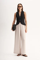 The Lana Knit Vest is made of our signature stretch knit fabric with a smooth, soft handfeel. Cut to a regular fit, this vest features contrasting chrome buttons for subtle metallic detailing. Style with soft tailoring for an elevated day to night look.