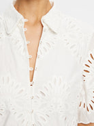 The Danielle Mini Shirt Dress is crafted from white cotton broderie in a relaxed shirt silhouette, featuring a button-through front and classic collar. Scalloped edging at the sleeves and hem adds a considered finish, while the removable waist tie allows you to adjust the shape with ease. Pair with slides for relaxed daytime dressing.