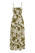 The Dahlia Maxi Dress is made from a linen blend fabrication in our exclusive Dahlia print. The silhouette is fitted to the waist with an a line skirt finishing just above the ankle. Features include a shirred bodice with a square neckline, adjustable straps and side seam pockets.