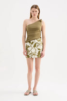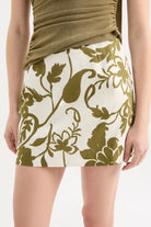 The Dahlia Mini Skirt is made from a linen blend fabrication in our exclusive Dahlia print. The silhouette is high waisted and mini in length. Features include a clean finish waist and invisible zipper. This style is fully lined.