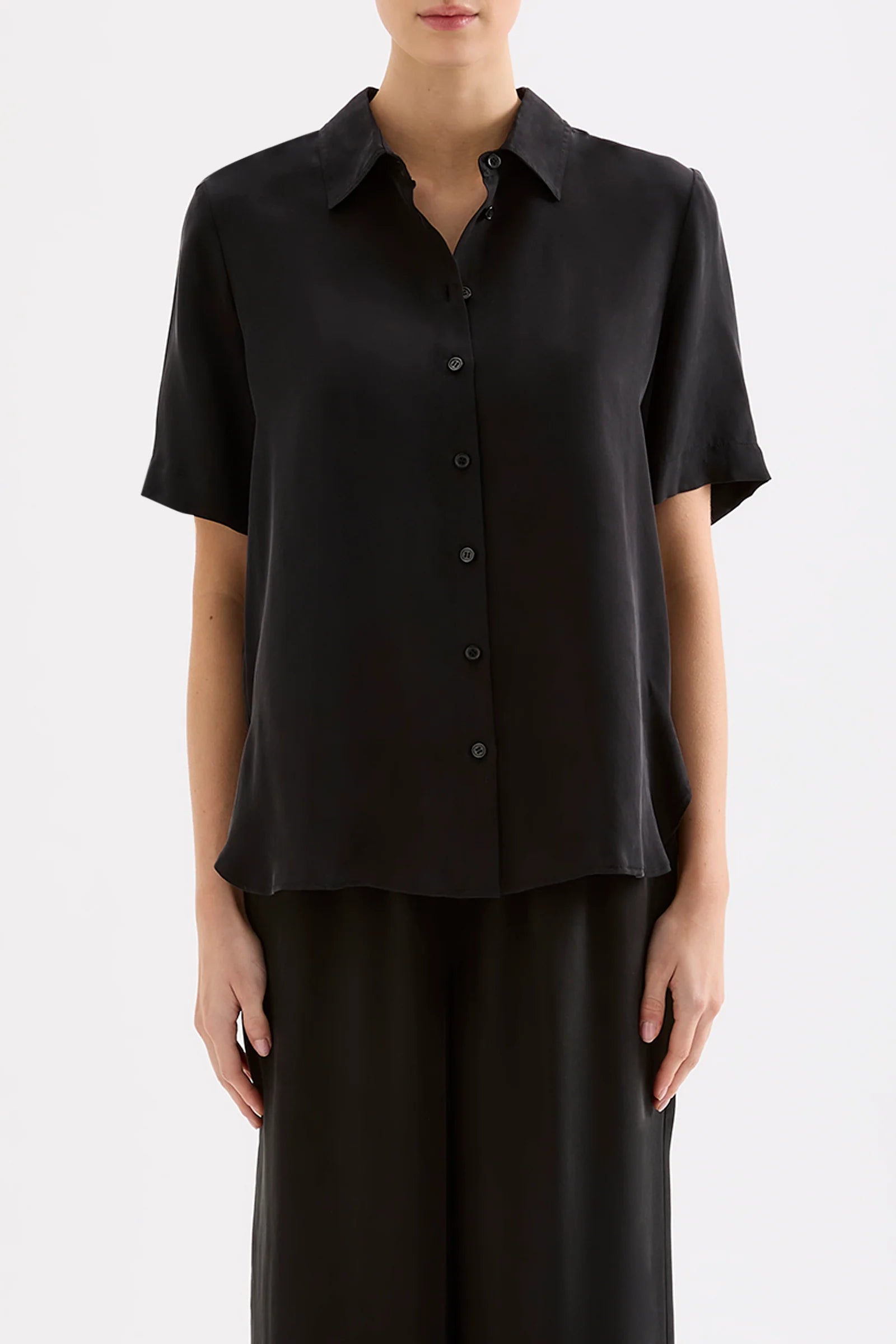The Dara Cupro Shirt is made in our signature cupro with a soft, sueded hand feel. The silhouette is relaxed and oversized through the body with the length finishing below the hips. Features include classic shirt detailing with back yoke and front button opening.