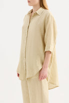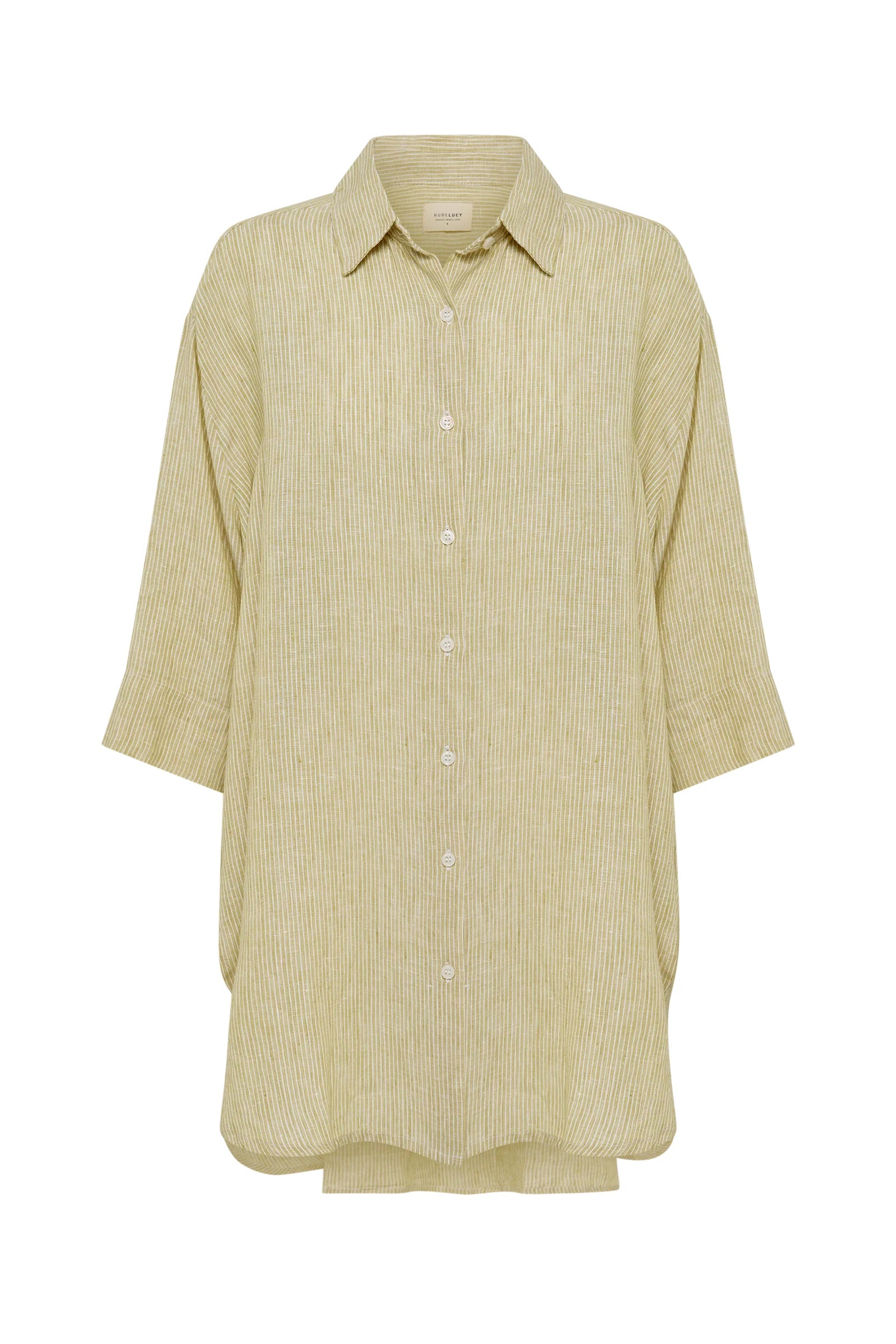 Nude Lucy - Lounge Stripe Linen Long Shirt (Moss Stripe)