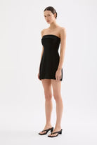 The Lyra Linen Dress in black is made from 100% linen which has been washed for a soft, breathable hand feel. The strapless silhouette is fitted at the bodice with an a line skirt that is mini in length. Features include panels to create shaping and zipper at centre back. This dress is fully lined.