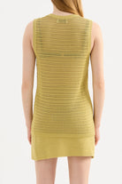 The Marlo Knit Top is made from a viscose blend yarn, with a cool hand feel and an open knit construction. The silhouette is a slim fitting, long line tank shape with length finishing below the hip. Features include a crew neck, angled side seams with splits, a stepped hem and rib construction around neckline, armhole and hem.