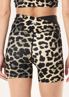 The Wander 5” Bike Short in Leopard and Smokestone are made in our Studio Soft fabrication, a lightly peached fabric with a matte finish. This high rise 5” bike short features a flattering contrast crossover detail at the waistband. Style this bike short with the matching Vita Sports Bra to complete the look.