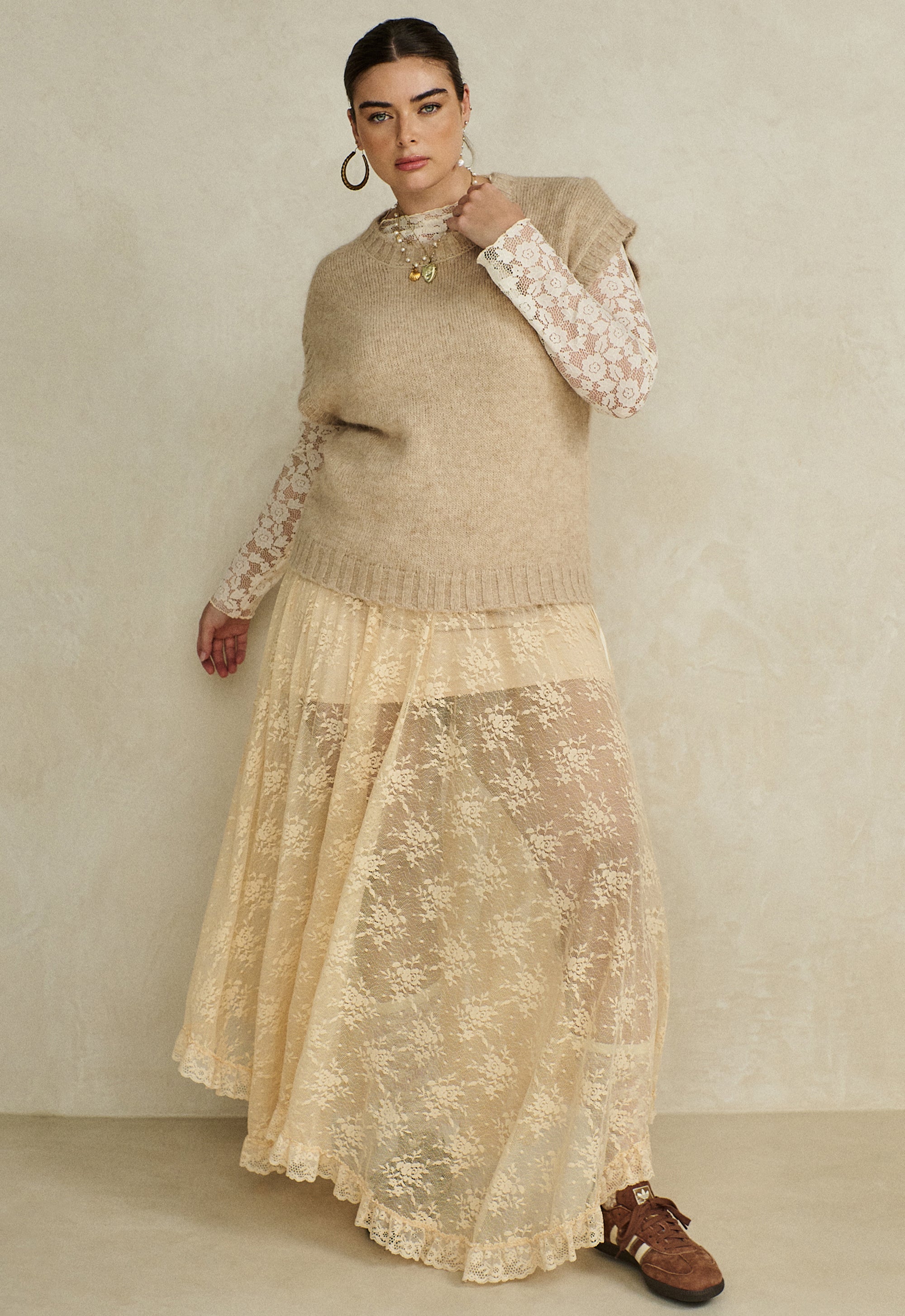 The Labyrinth Lace Maxi Skirt in Peach Bliss is the second colourway available in this style. An effortless statement piece that is ethereal and beautiful. Crafted from 90% recycled polyamide with a touch of elastane, this maxi flows with graceful movement while the delicate lace hem trim adds intricate detail. The elastic waist and adjustable side tie offer flattering versatility, whether worn at the waist or hips, while the hi-lo hem creates a playful, dynamic silhouette. Slip lining ensures comfort and confidence with every step.