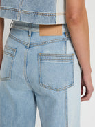 The Carla Denim Jean is a wide leg fit featuring contrast coloured panels, a logo leather patch, angled side pockets complete with signature antique brass hardware.