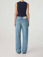 Our must-have baggy jean. The Sasha Jean sits just below the navel, is relaxed throughout, following a wide, straight leg profile falling over the shoe. Featuring button fly and narrow belt detail. Crafted from premium rigid denim.