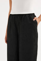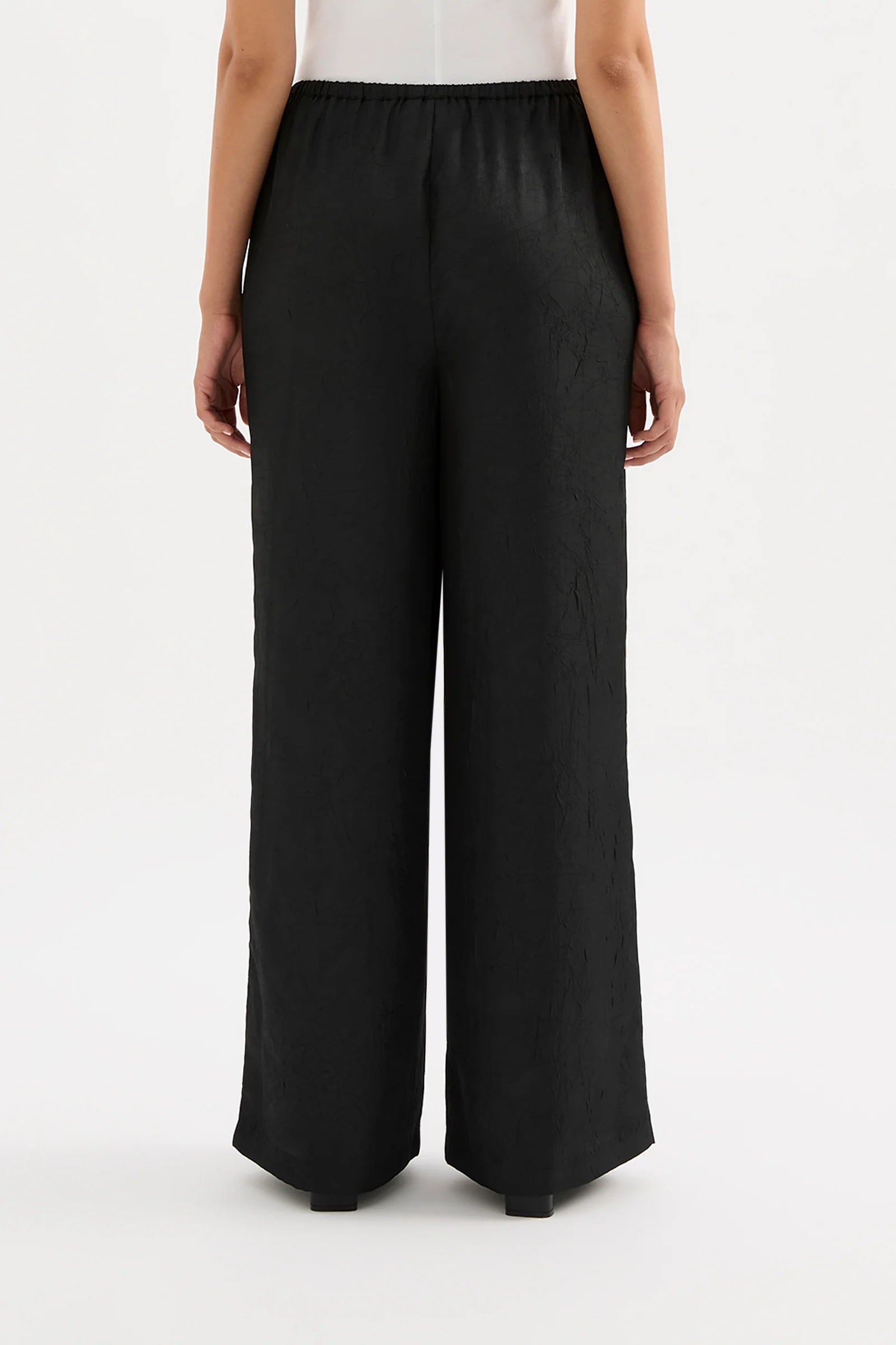 The Pandora Pant is made from a premium crushed satin featuring a luminous, gloss finish and subtle texture. The silhouette is relaxed with a wide full length leg. Features include an elasticated waistband and side seam pockets.
