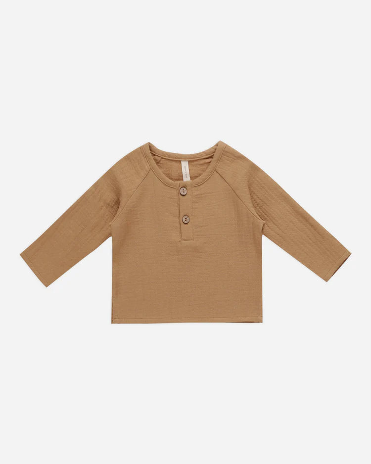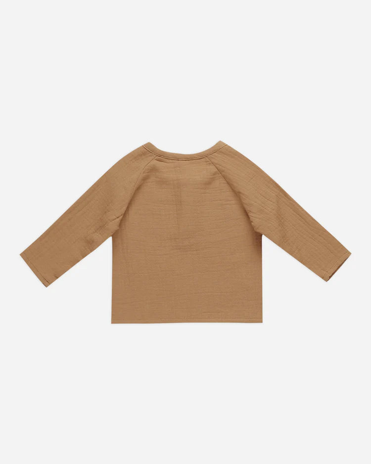 Longsleeve boxy fit gauze shirt with button front closure. pairs perfectly with our woven pant.