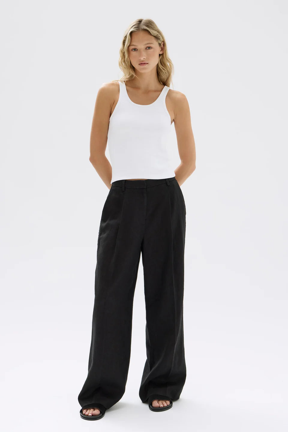 The signature Aria Pant is refreshed in our signature French linen. Finished with 100% cotton lining and side pocket details.