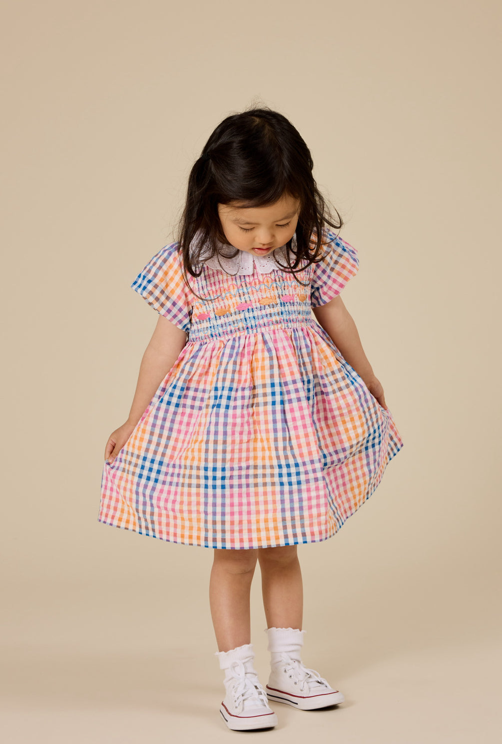 Goldie + Ace Rainbow Gingham Smocked Dress