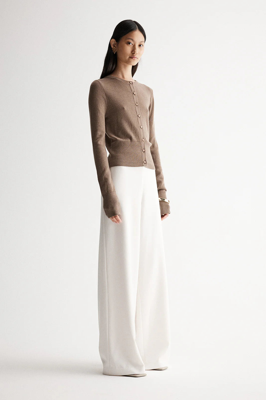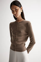 A return to form for the transition into a new season, the Madeleine Cardigan is an essential layering piece. Made of 100% Merino wool, this cardigan is luxuriously soft and warm. Cut to a slim fit silhouette with a crew neckline, deep ribbed hem and button through front, this cardigan adds a soft touch to tailored pieces and casual denim favourites.