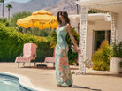 The Spell Floridian Bias Dress in Sage features a delicate flamingo print and is expertly cut on the bias for a flattering, fluid silhouette. This dress combines a subtle, nature-inspired pattern with a sophisticated shape, offering both comfort and style for warm-weather occasions.