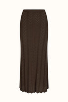 Experience ultimate comfort and style with the Lou Lou Knit Midi Skirt in Cacao. With an elasticated waist and fully fashioned knit, this skirt hugs your curves in all the right places. Featuring a scallop knit edge on the hem and intricate knit pattern, it's the perfect blend of classic and modern. Take on the world in this bold and daring piece.
