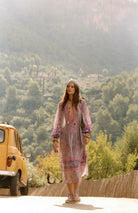 The Little Bird Gown in Berry is a captivating blend of elegance and free-spirited charm. Crafted from a luxe blend of organic cotton, LENZING™ ECOVERO™ viscose, and a touch of metallic thread, this gown shimmers with effortless grace.