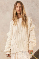 Stay comfy and stylish in our Nomadic Knit Jumper. The perfect mix of boho and urban, the boat neck features cable knit and fringing detail. Oversized for that effortless look, it's the perfect piece to add to your cozy weather rotation.