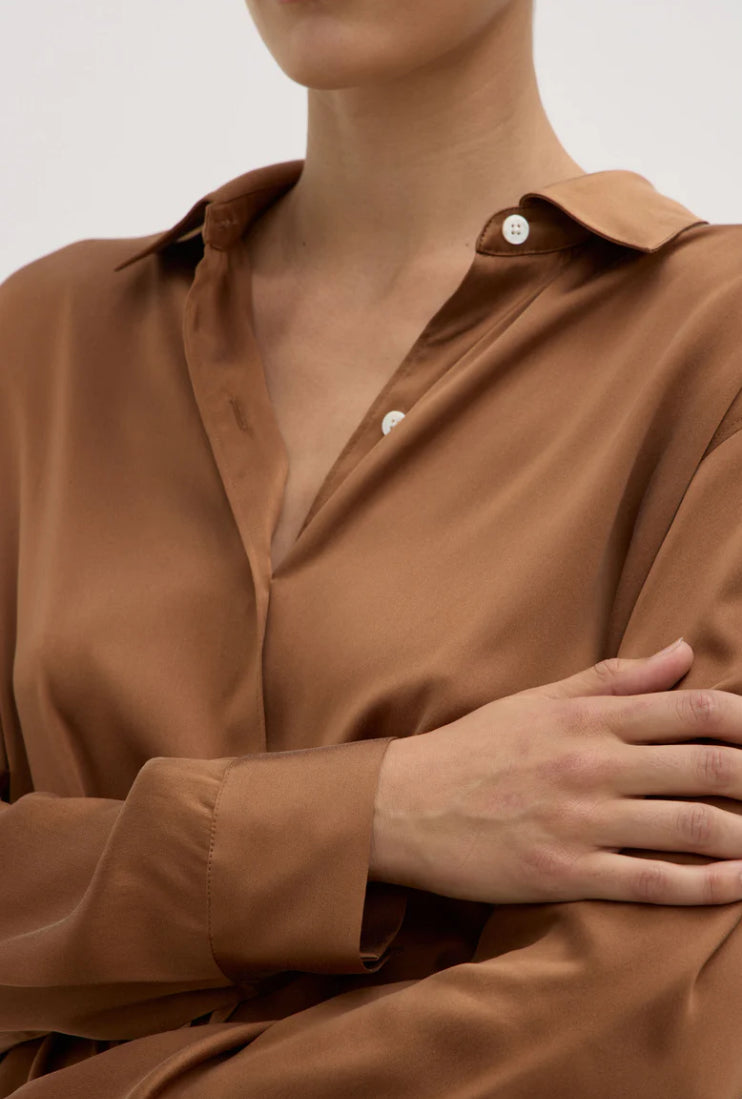 Assembly Label - Pippa Silk Long Sleeve Shirt (Bronze)