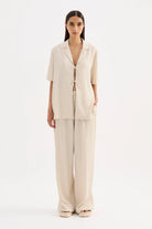 The Palma Pant is made from a lightweight textured fabric which has a dry hand feel. The silhouette is relaxed with a wide full length leg. Features include an elasticated waistband with a drawcord and side seam pockets. These pants are fully lined.