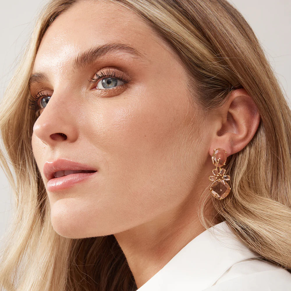 The Allison Earrings are a glam crystal statement style featuring Swarovski stones. Perfect for cocktail parties or a night out.