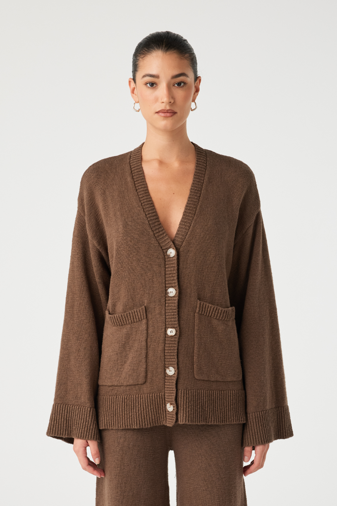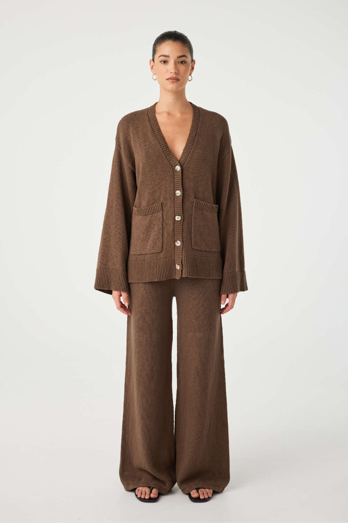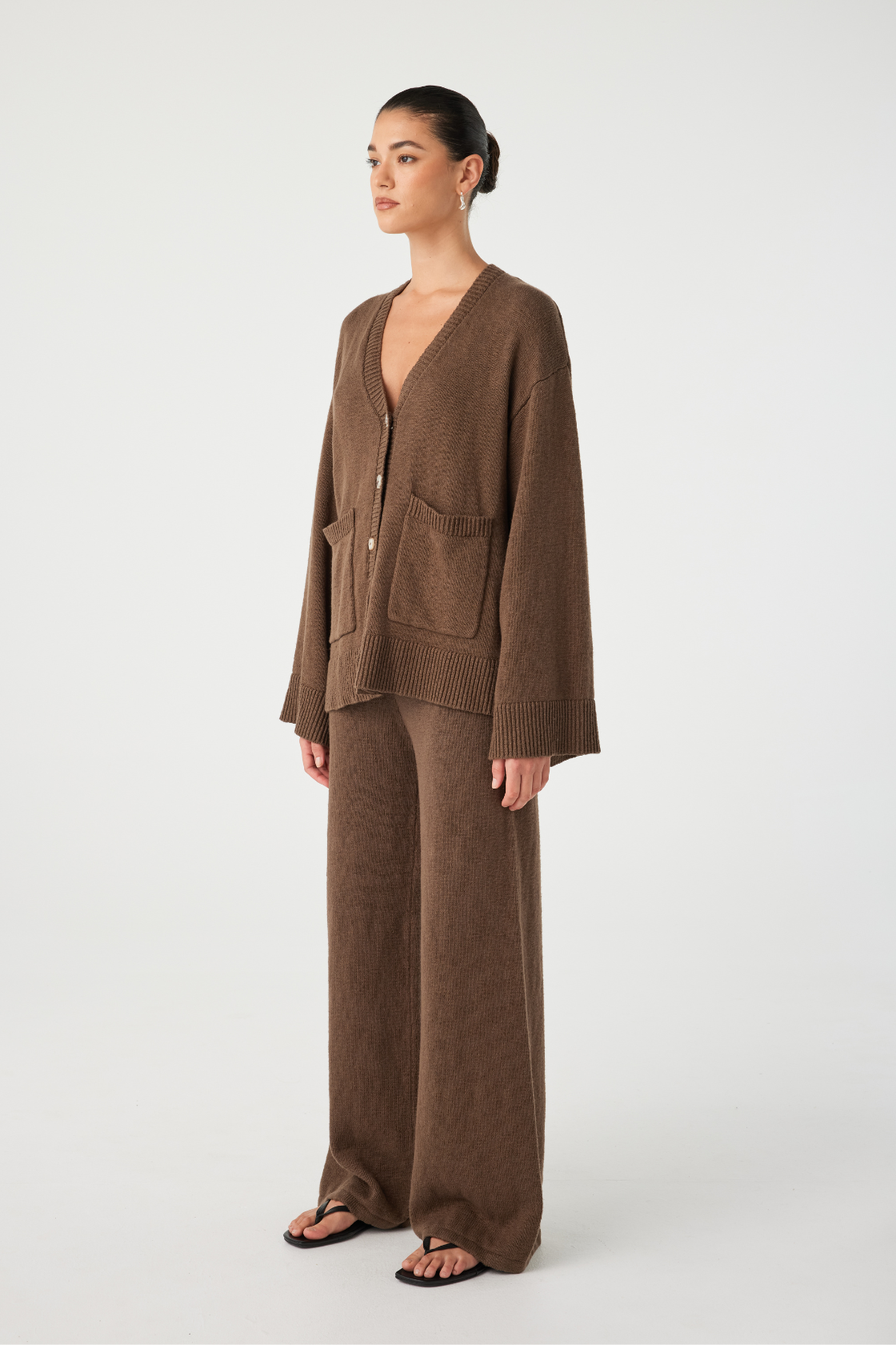 A relaxed, longline cardigan crafted from textured slub cotton. Designed with front pockets, wide sleeves, and a button-front closure for effortless layering.