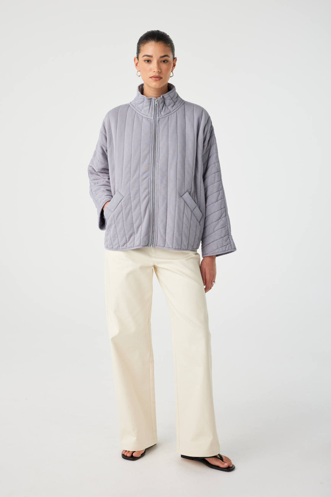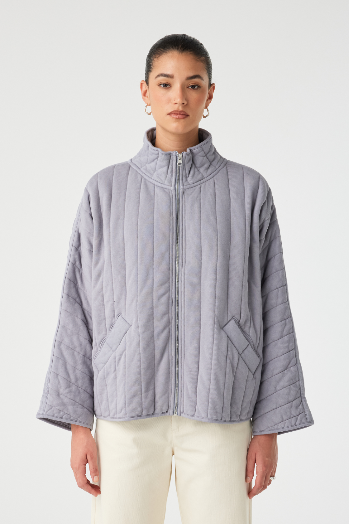 A bestselling quilted jacket, now in a new cement hue. Designed for a slouchy fit with a zip-through front and functional side pockets. Made from cotton with a soft jersey texture and finished using a water recycling system.
