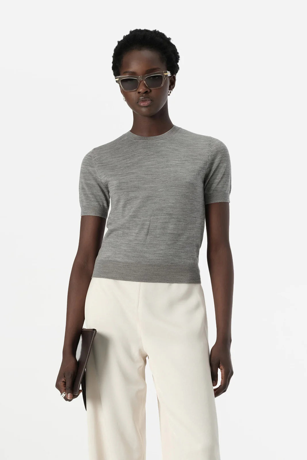 Relaxed, elevated casual pieces become the cornerstone of our wardrobes. The Ash Tee is made of 100% Merino wool with a fine knit construction that gives it a lightweight and luxuriously soft feel. Cut to a regular fit, the Ash Knit Tee has a ribbed crew neckline and short sleeve with ribbed cuffs and a fitted ribbed hem. An essential tee for transitional weather, style with go-to denim pieces and sneakers for casual weekend outfitting, or elevate with tailored pieces and chrome accessories.