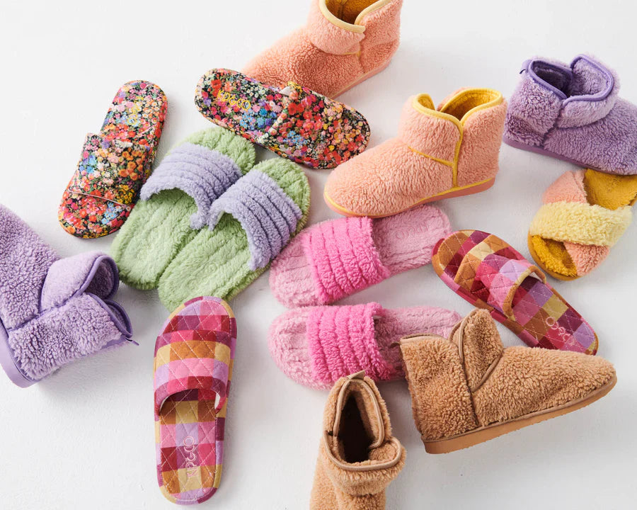 Quilted sherpa slide style slipper with a rubber sole. The perfect treat for the feet.