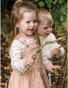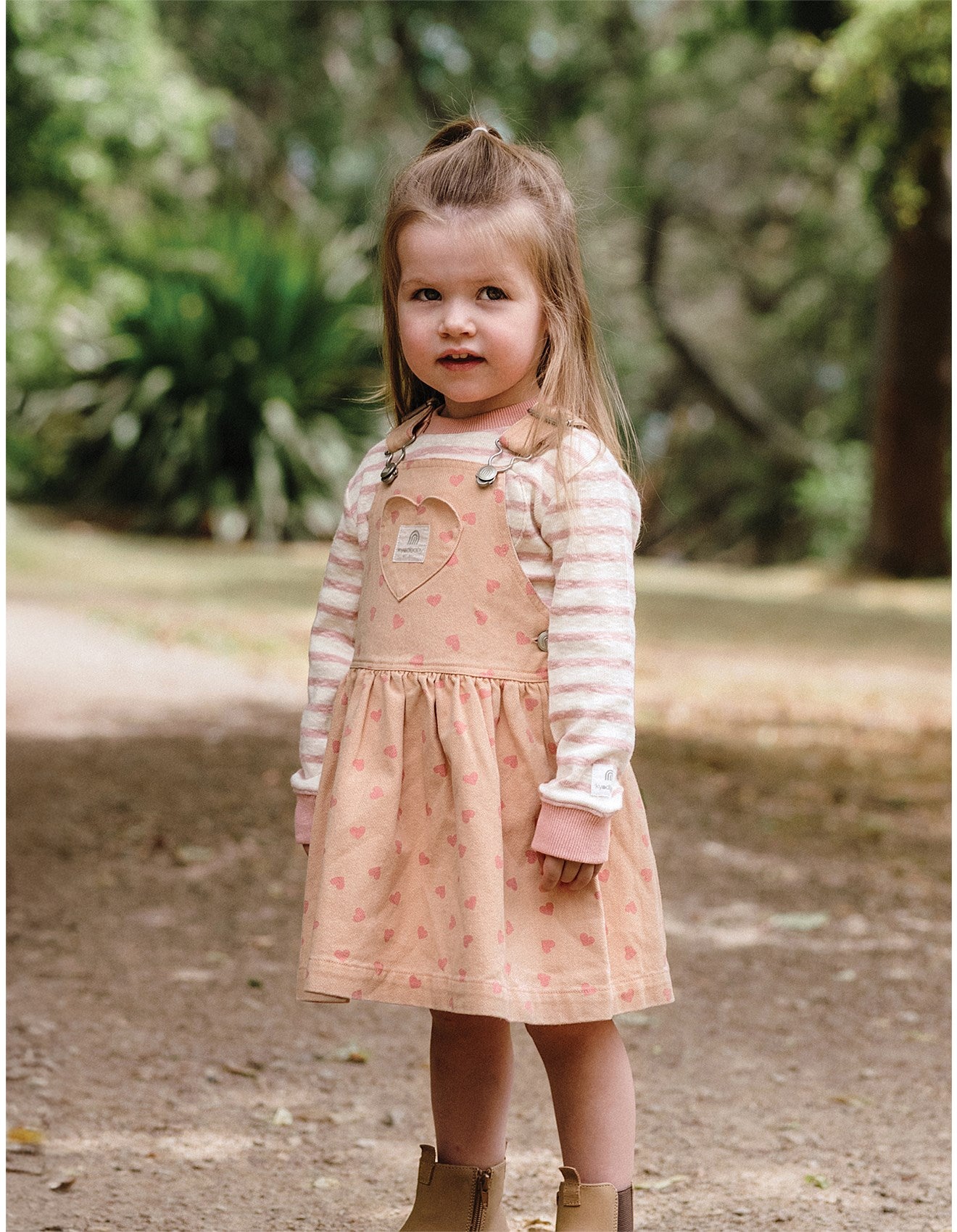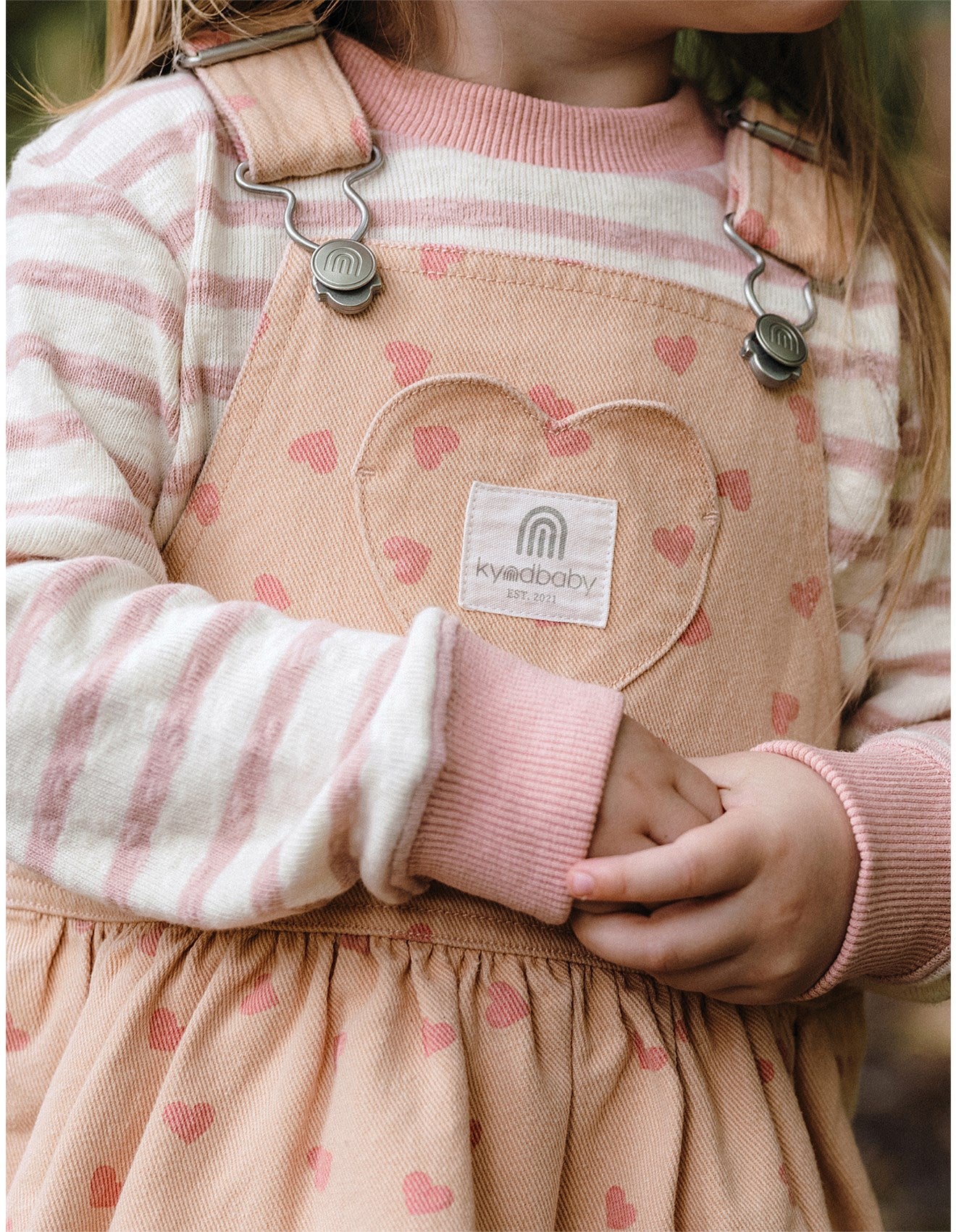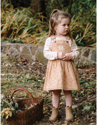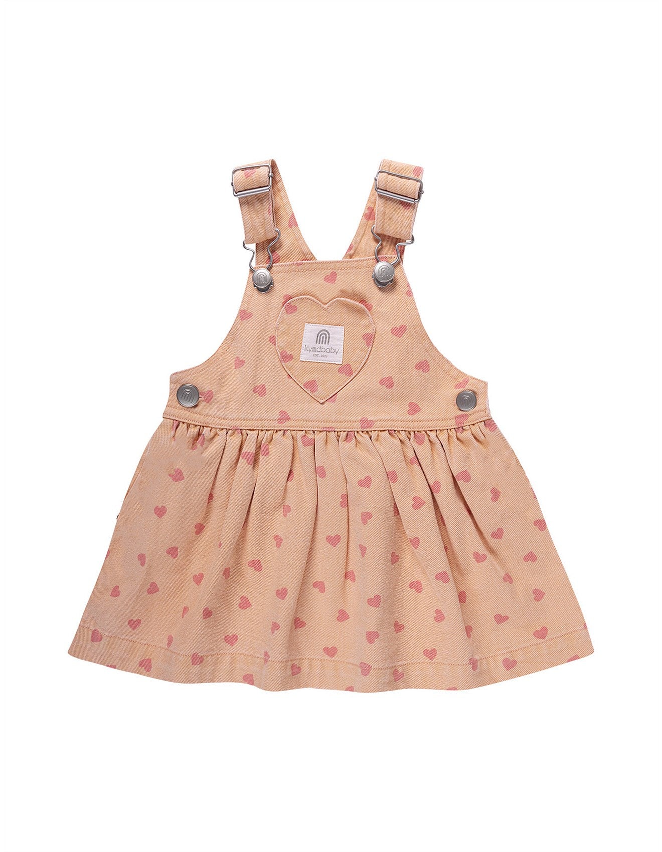 The Kynd Baby Denim Pinafore in Pink Denim is a cotton pinafore with adjustable shoulder straps and a full skirt. Machine washable and , perfect for layering over tops and bodysuits.