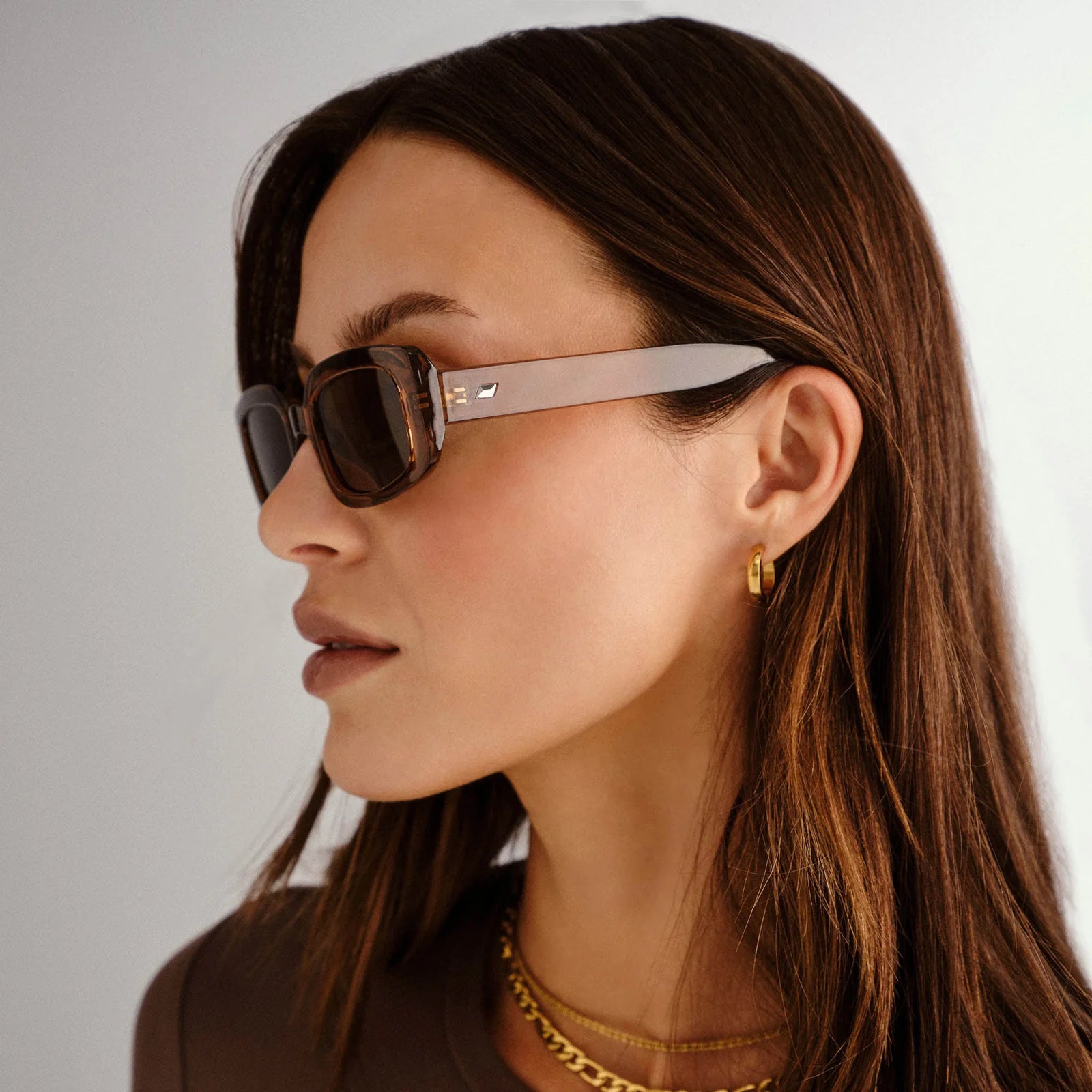 Designed with narrow proportions and wide fit for all face sizes, our DYNAMITE rectangular frame sunglasses are a wardrobe staple for both guys and girls. Featuring a classic noughties-inspired look, this unisex sunglass features discreet Le Specs metal stud detailing on both temples.