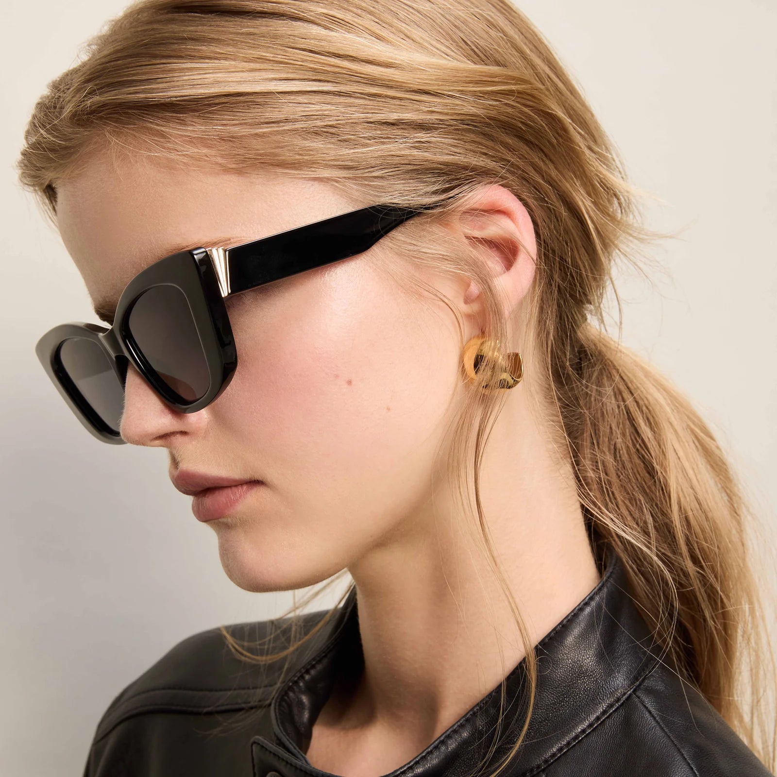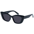 Sharp and confident, our TRANQUIL TURMOIL frames offer a mid-size fit and everyday look. Finished with a modern, flat profile, these cat eye sunglasses feature bespoke Le Specs geometric stacked hardware.